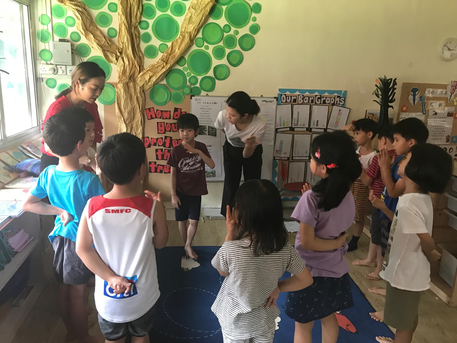 我们通过故事影视、故事书、儿歌、歌曲、绕口令、快板、游戏等形式,让孩子们理解故事中的内容,学习故事中的对白和词汇,以激发孩子们的创造思维,发展他们的华语口语表达能力,培养孩子们对表演的兴趣,从而建立他们的自信。